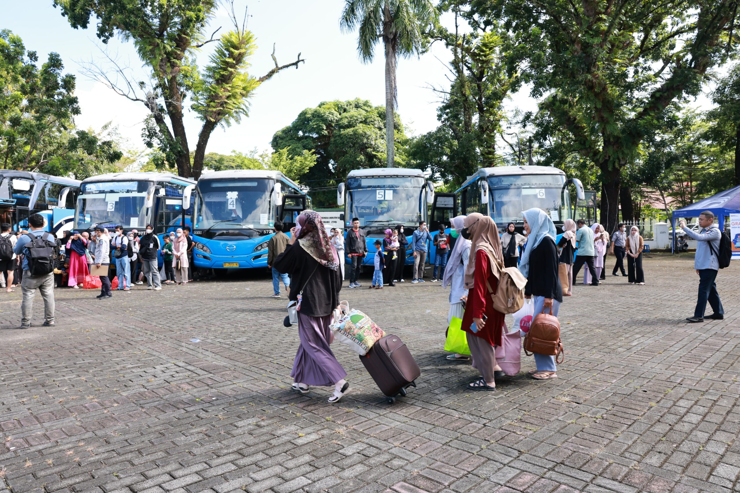 Pelepasan ratusan pemudik lebaran ini digelar di Lapangan Rumah Jabatan Gubernur, Sabtu, (6/04/2024). Danny Pomanto menemani Bahtiar hingga melepas sekira 15 bus dengan rute se-Sulsel itu.