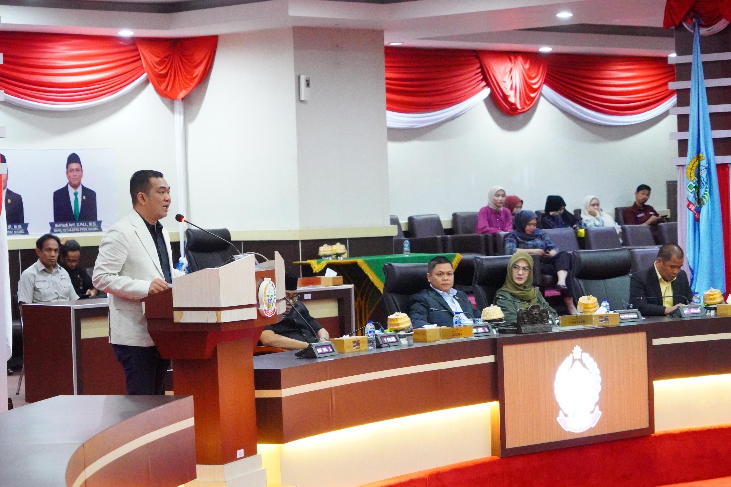 JEJAKNEWS.ID, Makassar,– Dewan Perwakilan Rakyat Daerah (DPRD) Provinsi Sulawesi Selatan menggelar rapat paripurna membahas pandangan umum fraksi terhadap Rancangan Peraturan Daerah (Ranperda) tentang pertanggungjawaban pelaksanaan APBD tahun anggaran 2024 dan Rencana Pembangunan Jangka Menengah Daerah (RPJMD) Sulsel 2025–2029, Selasa (8/7/2025).