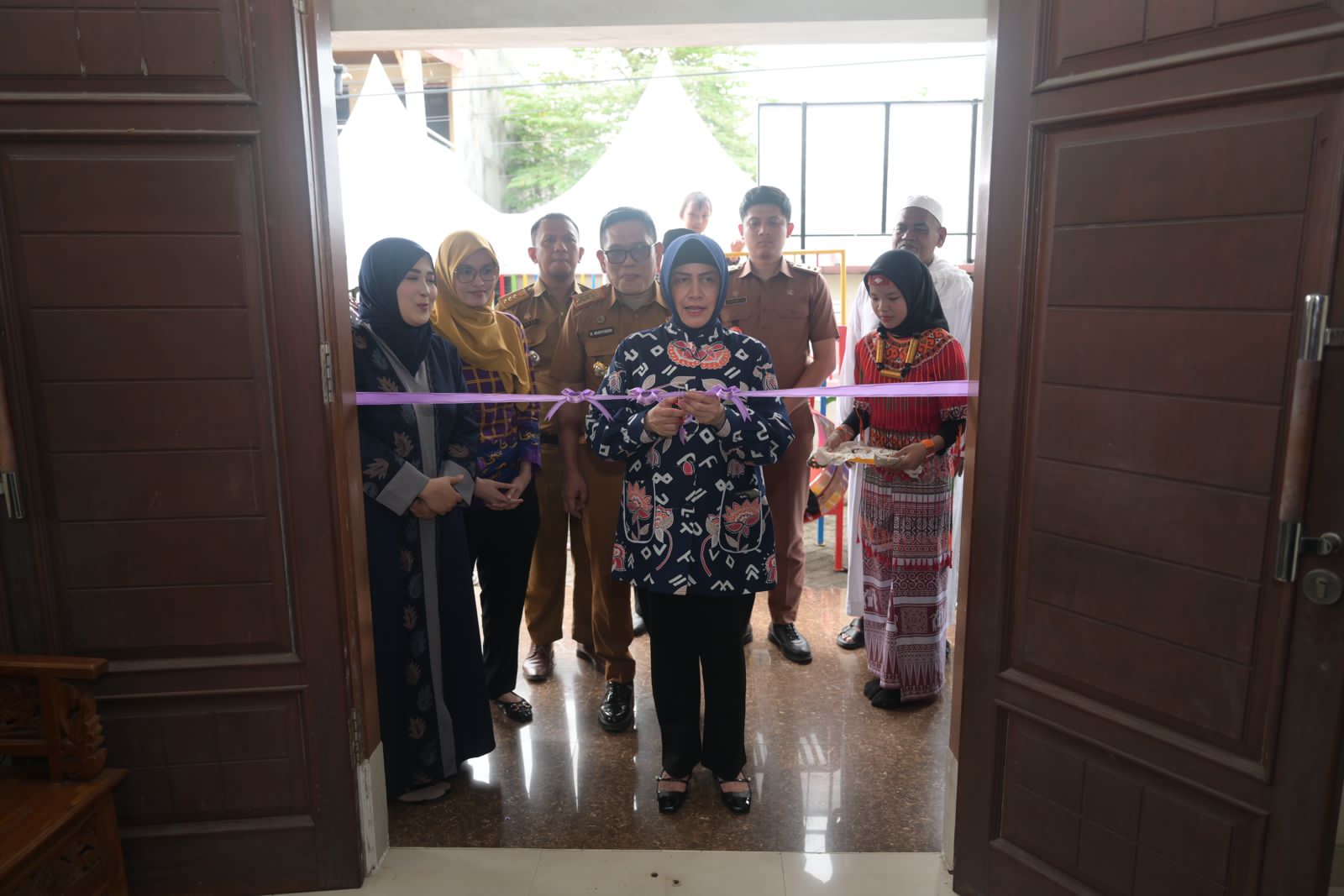 Peresmian gedung baru ditandai dengan acara pemotongan pita selanjutnya sambutan resmi oleh Indira selaku Bunda PAUD Kota Makassar.