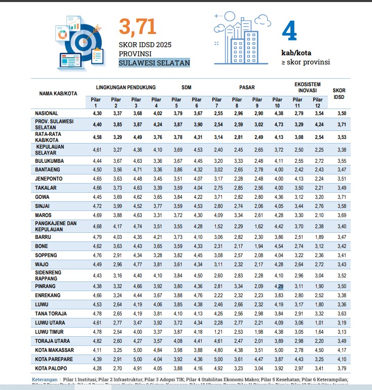 Hasil ini menunjukkan posisi Makassar sebagai daerah dengan performa daya saing yang kuat di tingkat nasional.